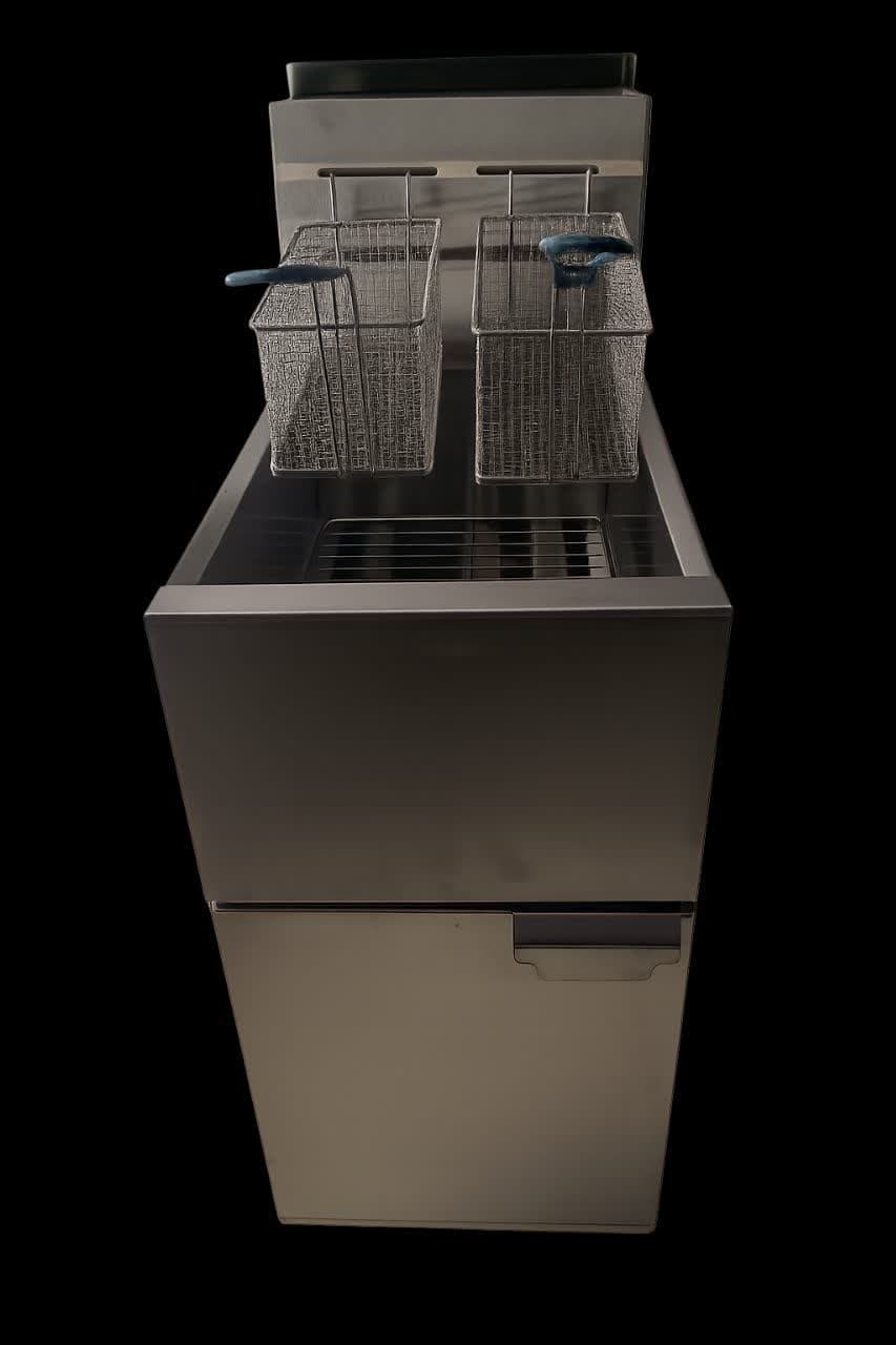 انتقال حرارت در این دستگاه بالاتر از کف مخزن انجام می پذیرد که این به این معنی است که قطعات ریز غذا که به کف مخزن ریخته می شوند دیرتر سوخته می شود، و باعث سیاه تر شدن روغن در زمان دیرتر می شود. این سرخ کن صنعتی با ظرفیت 20 یا 22 لیتر و با دو سبد و یک مخزن است.